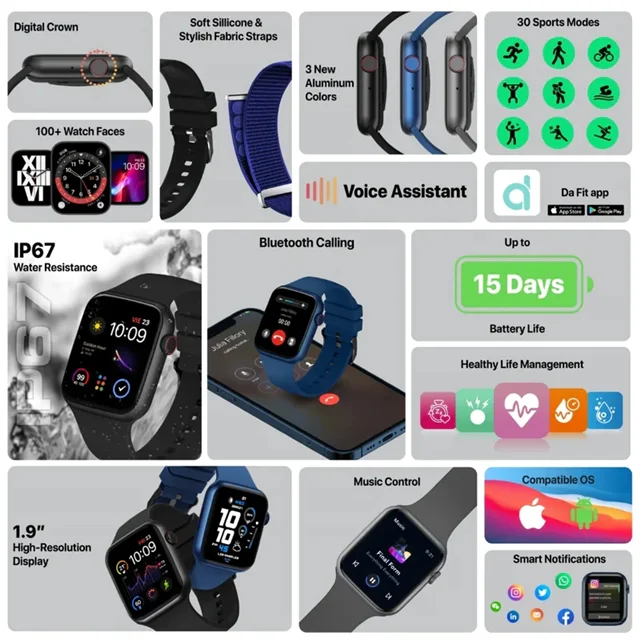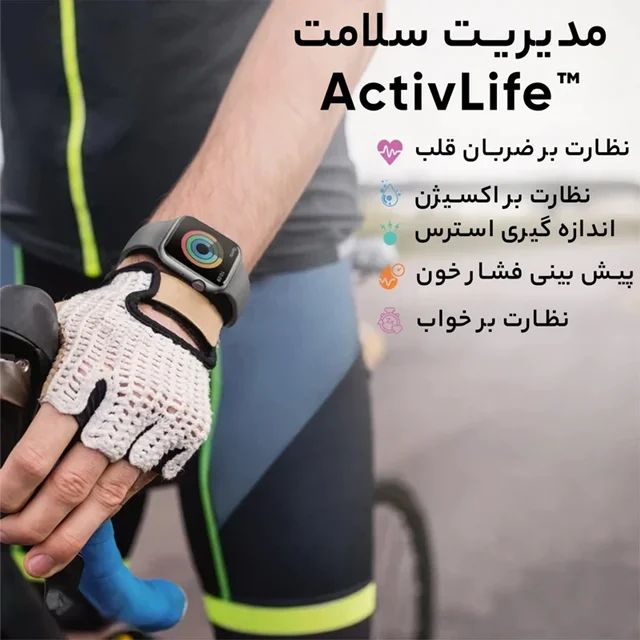 در این محصول برای ایجاد بهترین عملکرد اتصال و استفاده بدون نیاز به دست، از بلوتوث نسل 5 استفاده شده است. این محصول از سنسورهای سنجش ضربان قلب، گام شمار، سنجش سطح اکسیژن خون و ابزار رهگیری خواب بهره میبرد و کاربردهای سلامتی کاربران را پوشش میدهد. صفحه نمایش 1.9 اینچی این محصول تجربه دیداری و لمسی ایدهآلی برای کاربران ایجاد میکند. همچنین این محصول در برابر نفوذ گردوخاک و آب مقاوم است و از این جهت با استاندارد IP67 سازگاری دارد. ظاهر شیک، طراحی ارگونومیک و امکانات متفاوت از ویژگیهای دیگر این محصول هستند. مشخصات محصول: استفاده از بلوتوث نسل 5.0، و امکان برقراری تماس، پاسخ به پیامکها و ایمیلها دارای 30 حالت ورزشی، که به طور اختصاصی برای ثبت دقیق اطلاعات از فعالیتهای ورزشی ایجاد شدهاند. دارای صفحه نمایش با کیفیت 1.9 اینچ با فناوری TFT و رزولوشن 280x240 سازگاری با استاندارد IP67 برای مقاومت در برابر نفوذ گردوخاک و آب استفاده از سنسورهای سنجش ضربان قلب، گامشمار، اندازهگیری سطح اکسیژن خون و ابزار رهگیری خواب برای سنجش کامل اطلاعات سلامتی کاربر باتری داخلی 230 میلیآمپر ساعت/ امکان استفاده به مدت 10 تا 15 روز در یک بار شارژ کامل دارای بیش از صد صفحه ساعت متفاوت/ سازگار با سیستمهای عامل آندروید نسل 5 به بعد و iOS نسل 9 به بعد