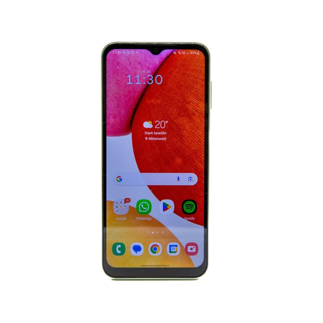 صفحه نمایش ۶.۶ اینچی گوشی گلکسی A14 از نوع FHD+ LCD است که به آن PLS هم گفته میشود. به زبان سادهتر، این صفحه نمایش یک السیدی پیشرفته است که از مدلهای IPS هم کیفیت بهتری دارد. این یعنی میتوانید منتظر کیفیت صفحه نمایش بسیار خوبی باشید که روشنایی زیادی دارد و از زوایای مختلف هم عالی به نظر میرسد، هرچند که شاید در نور مستقیم خورشید کمی نیاز به دقت داشته باشید. صفحه نمایش از رزولوشن کافی برخوردار است و وضوح بالایی دارد که در ترکیب با نرخ نوسازی ۹۰ هرتزی، عملکردی روان و بیدردسر را به ارمغان میآورد و به راحتی میتوانید کارهای روزمره را با گوشی انجام دهید. نسبت صفحه نمایش به بدنه حدود ۸۰٪ است که نشان دهنده حاشیه نسبتا زیاد گوشی است، ویژگیای که البته از گوشی در این رنج قیمتی انتظار میرود و چندان عجیب نیست.